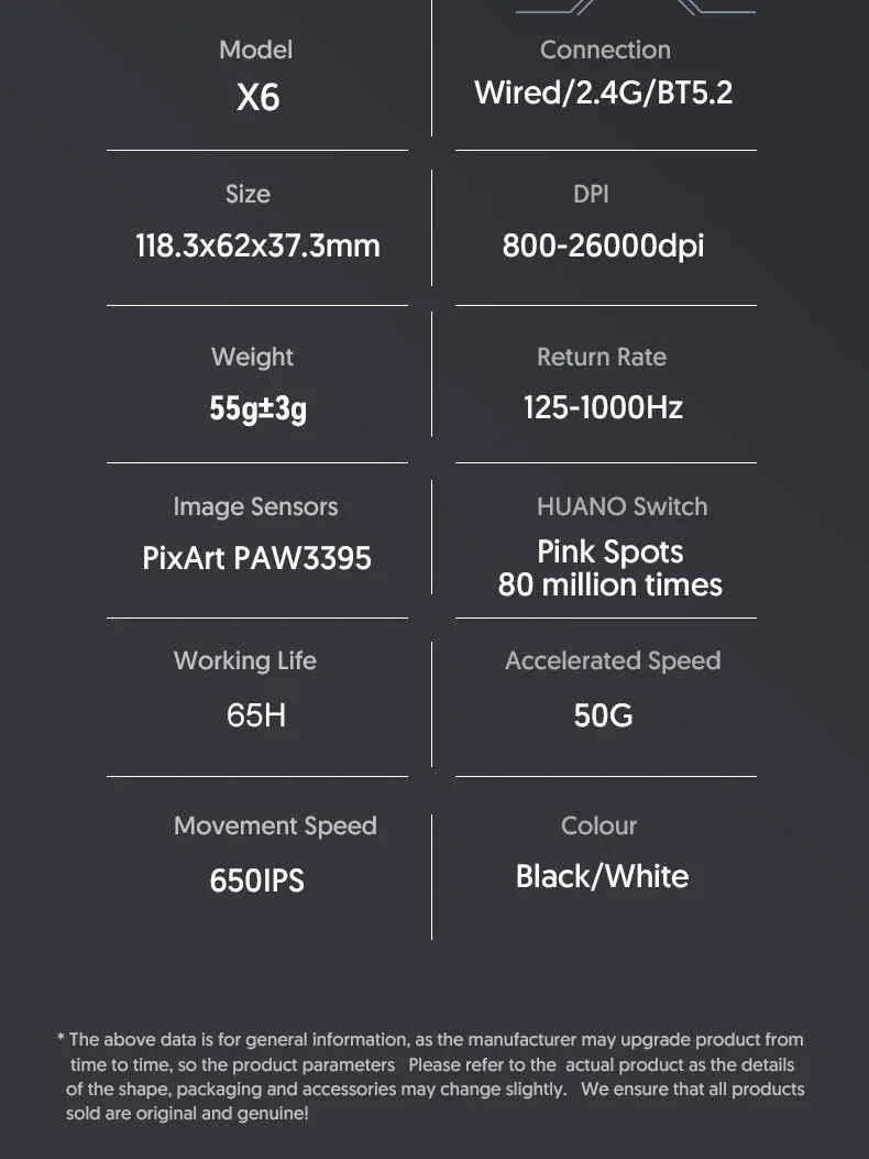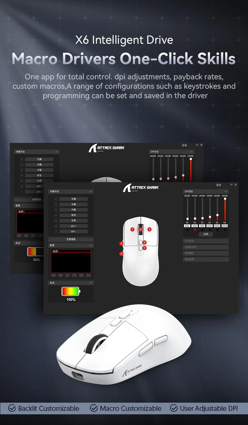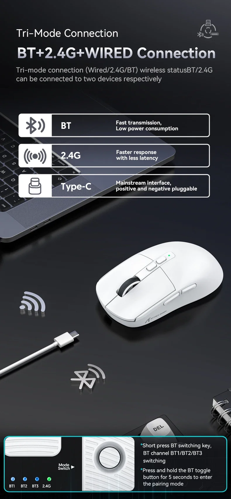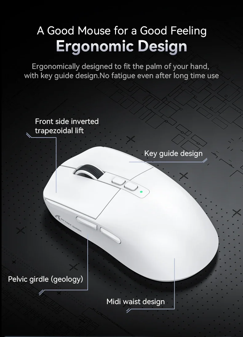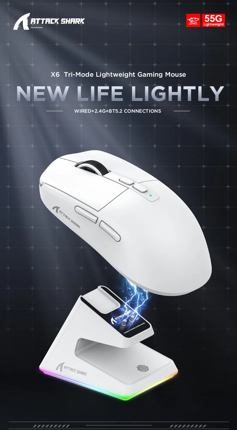 Attack Shark X6 PixArt PAW3395 Gaming Mouse, Bluetooth Tri-Mode Connection, RGB Touch Magnetic Charging Base